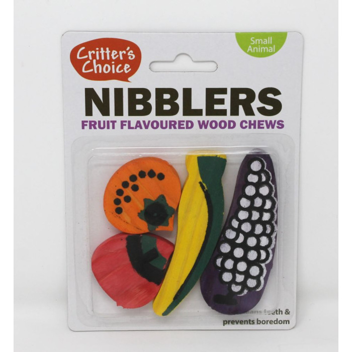 Fruit flavoured, wooden chews for all pets who like to chew, especially rabbits, guinea pigs, rats, cockatiels and parrots.