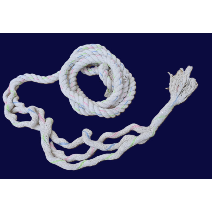 3 lengths of soft cotton strands, twisted together to make a thicker rope.