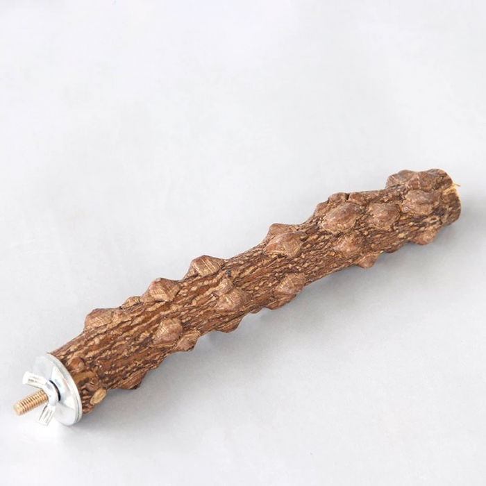 Wooden perch made from Pepperwood. These perches have natural, raised knots to encourage foot movement and improve balance.
